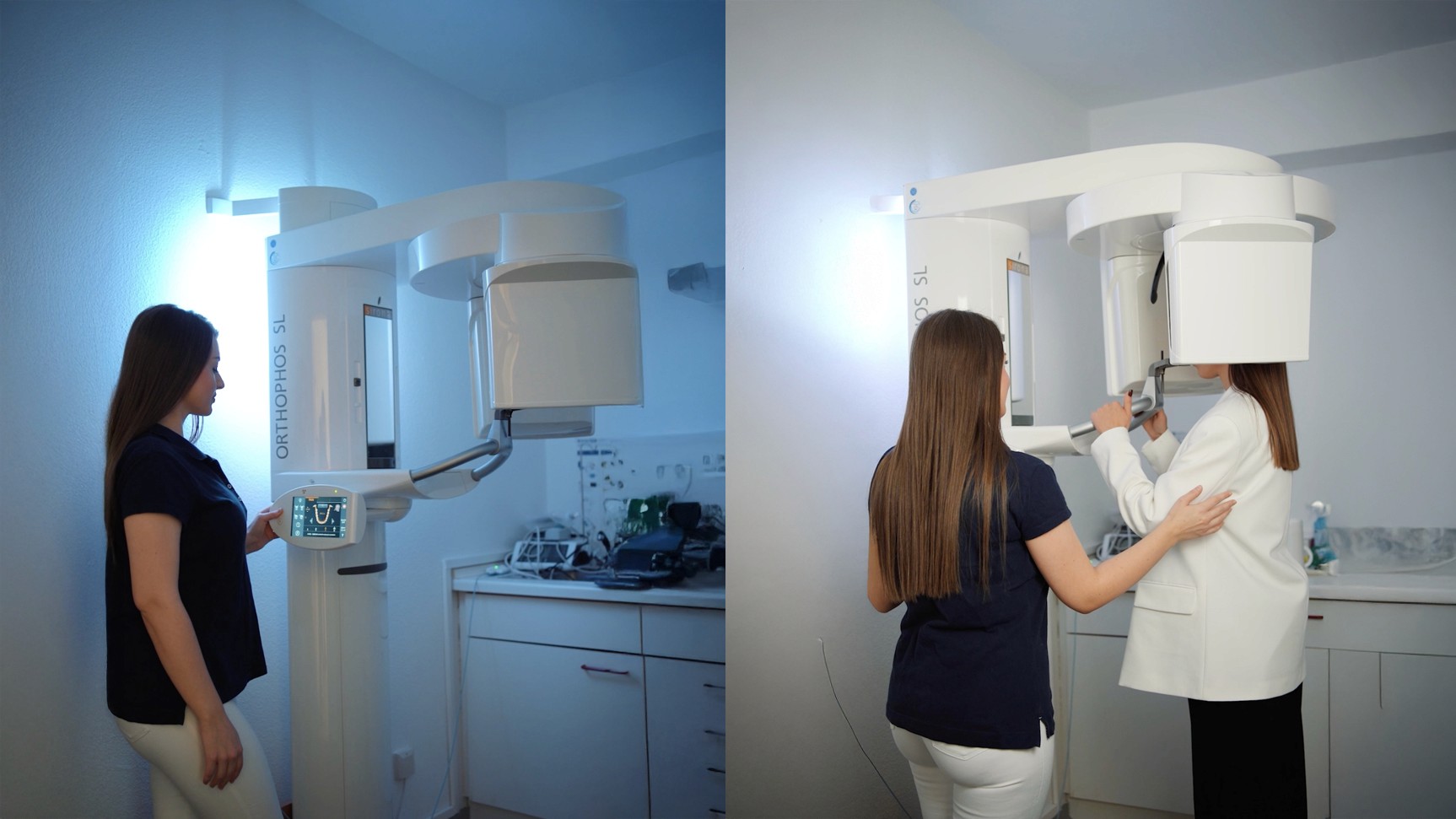 Die Digitale Volumentomographie (DVT) ermöglicht eine dreidimensionale Darstellung von Zähnen, Kieferknochen und umliegenden Strukturen. In unserer Praxis in Uhlenhorst setzen wir diese Technologie für präzise Diagnostik und Behandlungsplanung ein, z. B. zur Lagebestimmung von Weisheitszähnen, Beurteilung von Kiefergelenken oder Implantatplanung.